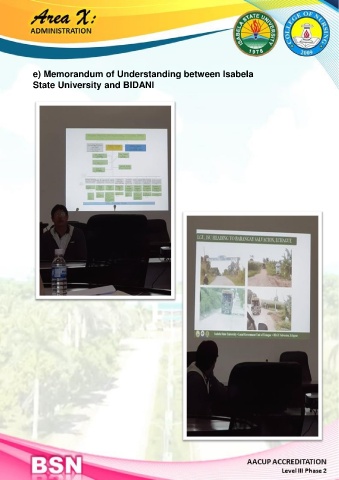 e) Memorandum of Understanding between Isabela State University and BIDANI