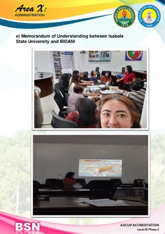 e) Memorandum of Understanding between Isabela State University and BIDANI