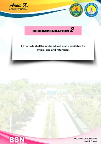 RECOMMENDATION 2 All records shall be updated and made available for official use and reference.