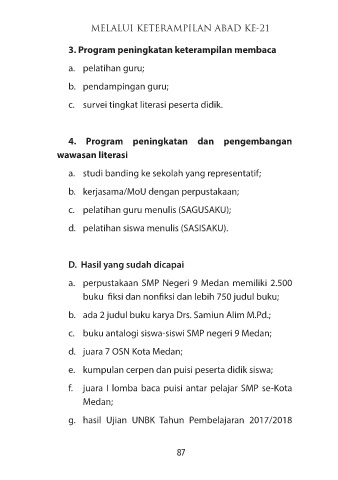 d. pelatihan siswa menulis (SASISAKU).
