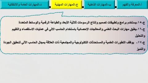 د-المهارات العامة والانتقالية ج-المهارات المهنية ب-المهارات الذهنية أ-المعرفة والفهم