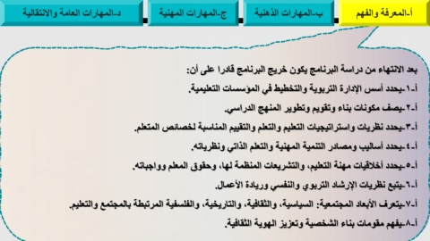 د-المهارات العامة والانتقالية ج-المهارات المهنية ب-المهارات الذهنية أ-المعرفة والفهم