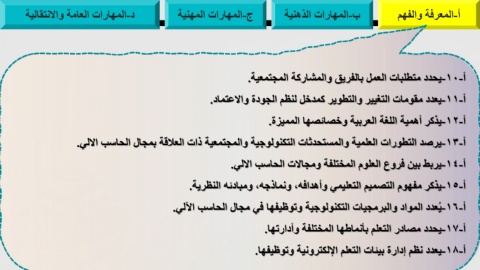د-المهارات العامة والانتقالية ج-المهارات المهنية ب-المهارات الذهنية أ-المعرفة والفهم