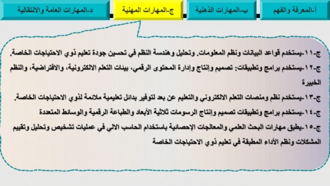 ج-11-يستخدم قواعد البيانات ونظم المعلومات .وتحليل وهندسة النظم في تحسين جودة تعليم ذوي الاحتياجات الخاصة.