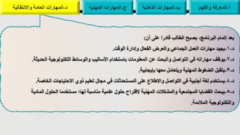 د-المهارات العامة والانتقالية ج-المهارات المهنية ب-المهارات الذهنية أ-المعرفة والفهم