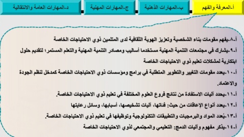 أ-13-يُعدد المواد والبرمجيات والتطبيقات التكنولوجية وتوظيفها في تعليم ذوي الاحتياجات الخاصة.