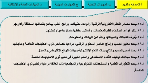 أ-18-يحدد معايير تصميم وإنتاج عناصر المحتوى الرقمي ،مراعيا خصائص ذوي الاحتياجات الخاصة وحاجاتهم