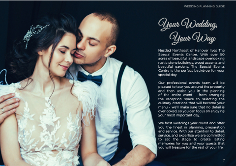 Nestled Northeast of Hanover lives The Special Events Centre. With over 50 acres of beautiful landscape overlooking rustic stone buildings, wood accents and beautiful gardens, The Special Events Centre is the perfect backdrop for your special day.