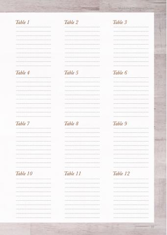 Table 1 Table 2 Table 3 Table 4 Table 5 Table 6 Table 7 Table 8 Table 9 Table 10 Table 11 Table 12 Wedding Planning Guide 39