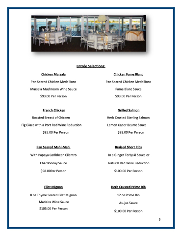 Pan Seared Chicken Medallions Fume Blanc Sauce $93.00 Per Person