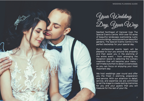 Nestled Northeast of Hanover lives The Special Events Centre. With over 50 acres of beautiful landscape overlooking rustic stone buildings, wood accents an beautiful gardens, The Special Events Centre is the perfect backdrop for your special day.