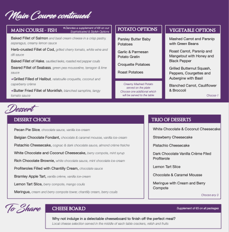 Denotes a supplement of €6 on our Sophisticated & Stylish Options