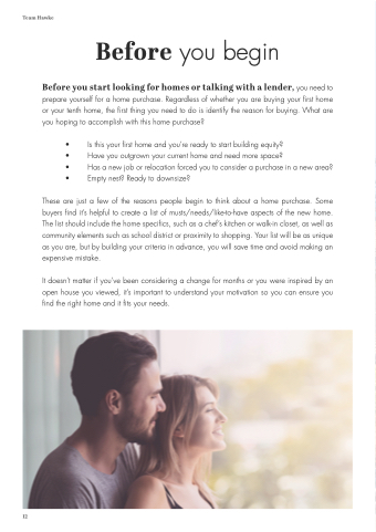 Before you start looking for homes or talking with a lender, you need to prepare yourself for a home purchase. Regardless of whether you are buying your first home or your tenth home, the first thing you need to do is identify the reason for buying. What are you hoping to accomplish with this home purchase?