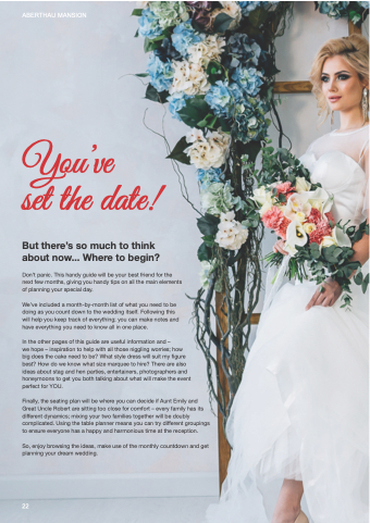 We’ve included a month-by-month list of what you need to be doing as you count down to the wedding itself. Following this will help you keep track of everything; you can make notes and have everything you need to know all in one place.