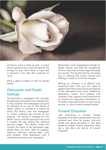 Like everything in in society funeral etiquette and what is expected of you has evolved over time As always common sense and good discretion is is the best guide to proper funeral funeral etiquette Here are a a a a a few do’s and don’ts of funeral funeral etiquette Page - CRABIEL HOME FOR FUNERALS CRABIEL HOME FOR FUNERALS - Page 19