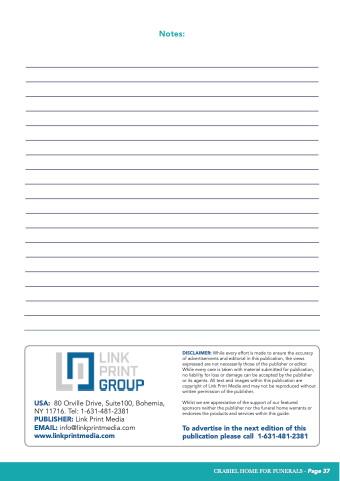 and and may not be reproduced without written permission of of the publisher Whilst we are appreciative of of the the the the support of of our featured sponsors neither the the the the the publisher nor the the the the the funeral home warrants or or or or or endorses the the the the products and services within this guide To advertise in the next edition of this publication please call 1-631-481-2381 Page - CRABIEL HOME FOR FUNERALS CRABIEL HOME FOR FUNERALS - Page 37