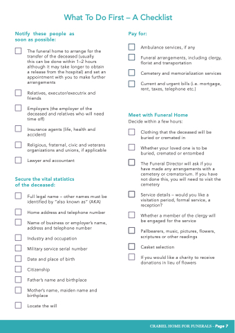 If you would like a a a charity to receive donations in lieu of flowers What To Do First – A Checklist