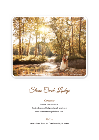 Email: stonecreeklodgeindiana@gmail.com www.stonecreeklodgeindiana.com