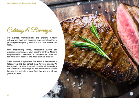 Great National Ballykisteen Golf Hotel is committed to helping you find the perfect meal for your guests. We invite you to take the time and consider all the options, ask questions & challenge us. We welcome the chance to excel and strive to present food that you and all your guests will love.