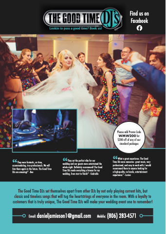 The Good Time DJs set themselves apart from other DJs by not only playing current hits, but classic and timeless songs that will tug the heartstrings of everyone in the room. With a loyalty to customers that is truly unique, The Good Time DJs will make your wedding event one to remember!