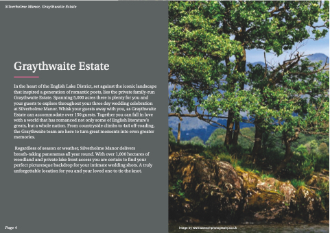 In the heart of the English Lake District, set against the iconic landscape that inspired a generation of romantic poets, lies the private family-run Graythwaite Estate. Spanning 5,000 acres there is plenty for you and your guests to explore throughout your three day wedding celebration at Silverholme Manor. Whisk your guests away with you, as Graythwaite Estate can accommodate over 150 guests. Together you can fall in love with a world that has romanced not only some of English literature’s greats, but a whole nation. From countryside climbs to 4x4 off-roading, the Graythwaite team are here to turn great moments into even greater memories.