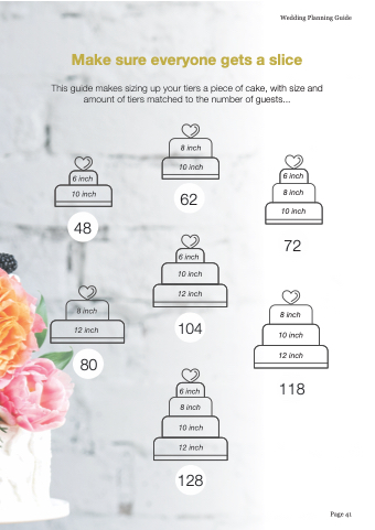 This guide makes sizing up your tiers a piece of cake, with size and amount of tiers matched to the number of guests...