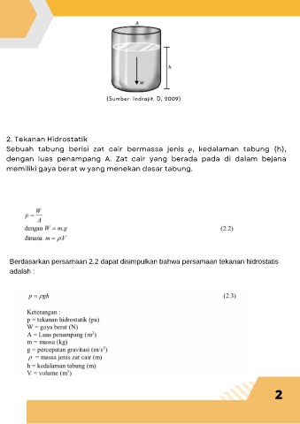 Berdasarkan persamaan 2.2 dapat disimpulkan bahwa persamaan tekanan hidrostatis