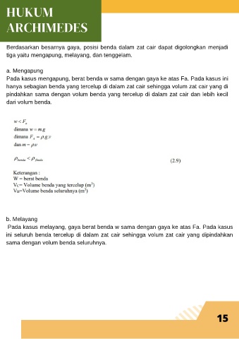 Berdasarkan besarnya gaya, posisi benda dalam zat cair dapat digolongkan menjadi