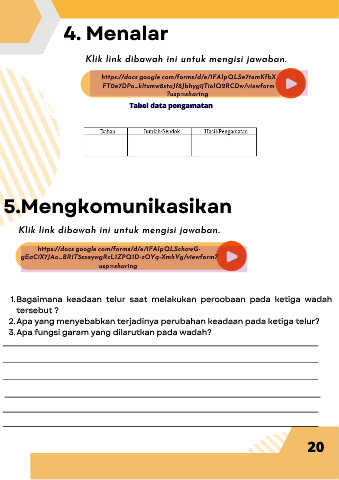 1. Bagaimana keadaan telur saat melakukan percobaan pada ketiga wadah
