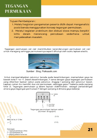total 2l. Tegangan permukaan g dalam lapisan didefinisikan sebagai perbandingan
