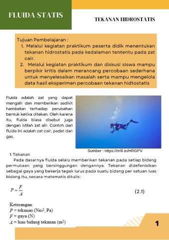 tekanan hidrostatis pada kedalaman tententu pada zat