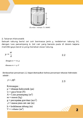 Berdasarkan persamaan 2.2 dapat disimpulkan bahwa persamaan tekanan hidrostatis