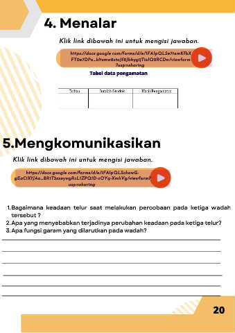 1. Bagaimana keadaan telur saat melakukan percobaan pada ketiga wadah