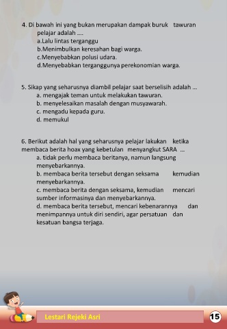 6. Berikut adalah hal yang seharusnya pelajar lakukan ketika