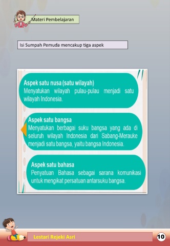Materi Pembelajaran Isi Sumpah Pemuda mencakup tiga aspek Lestari Rejeki Asri Nama Pembuat, Sekolah 10