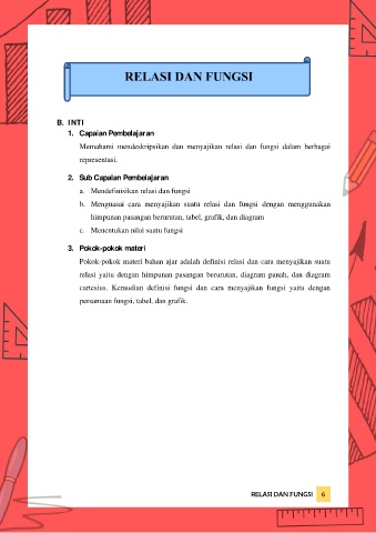 Pokok-pokok materi bahan ajar adalah definisi relasi dan cara menyajikan suatu