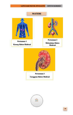 LKPD ELEKTRONIK INTERAKTIF SISTEM EKSKRESI MATERI Pertemuan 2 Pertemuan 1 Mekanisme Sistem Konsep Sistem Ekskresi Ekskresi Pertemuan 3 Gangguan Sistem Ekskresi xv