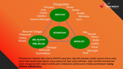 Pemahaman hakekat atau esensi EMOSI yang baru saja kita lakukan adalah esensi emosi yang
