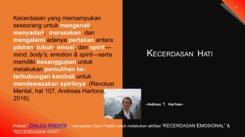 Praktek “DIALOG KREATIF”, merupakan Cara Praktis untuk melakukan aktifasi “KECERDASAN EMOSIONAL” &