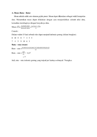 Jadi, rata – rata indomie goreng yang terjual per harinya sebanyak 7 bungkus