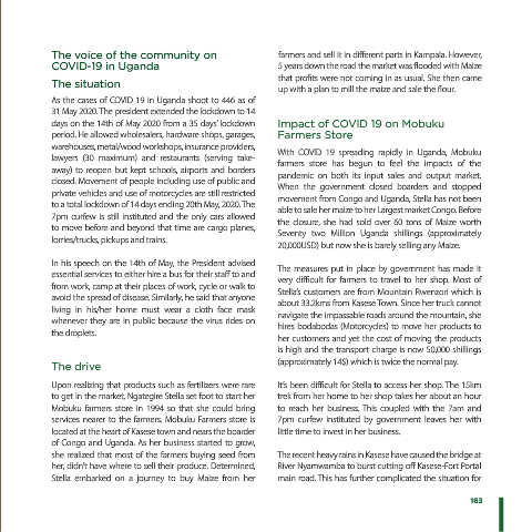 services nearer to the farmers. Mobuku Farmers store is 7pm curfew instituted by government leaves her with