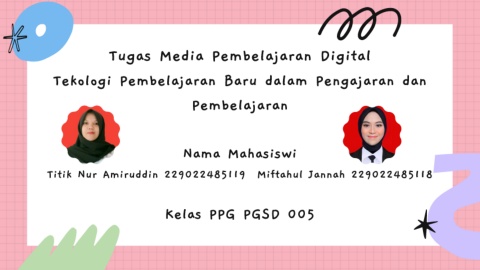 Tugas Media Pembelajaran Digital Tekologi Pembelajaran Baru dalam Pengajaran dan Pembelajaran Nama Mahasiswi Titik Nur Amiruddin 229022485119 Miftahul Jannah 229022485118 Kelas PPG PGSD 005
