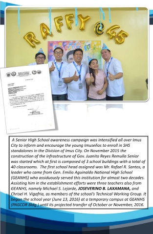began the school year (June 13, 2016) at a temporary campus at GEANHS