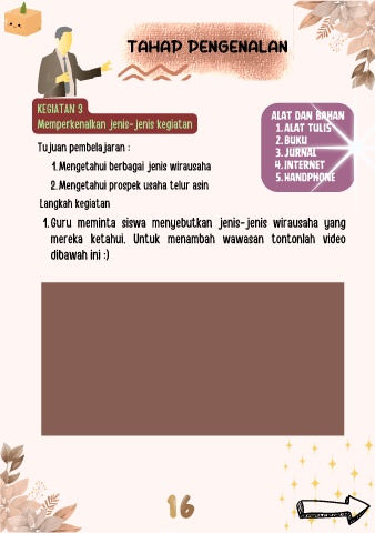Memperkenalkan jenis-jenis kegiatan Alat dan bahan