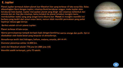 Planet Jupiter termasuk dalam planet luar Matahari dan yang terbesar di tata surya kita. Kalau