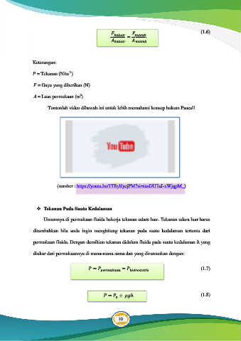 permukaan fluida. Dengan demikian tekanan didalam fluida pada suatu kedalaman ℎ yang