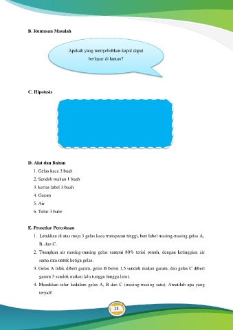 3. Gelas A tidak diberi garam, gelas B berisi 1,5 sendok makan garam, dan gelas C diberi