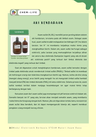 menghasilkan listrik. Dalam aki, asam sulfat berfungsi sebagai