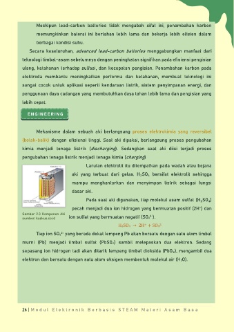 murni (Pb) menjadi timbal sulfat (PbSO4) sambil melepaskan dua elektron. Sedang