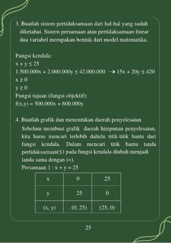 3. Buatlah sistem pertidaksamaan dari hal-hal yang sudah